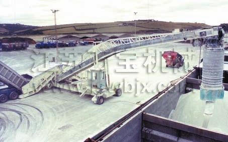 輪胎式移動裝船機是一種新型碼頭裝船裝置,全部裝船系統安裝在可以在碼頭任意位置自由移動的行走平臺上,移動行走機構采用輪胎形式。適用于裝載各種塊狀、粒狀等松散物料。進料裝置具備穩流功能,保證連續、均勻、平穩地供料;自卸卡車或裝載機以最快的速度直接卸料,極大提高了運營能力。它由行走機構、皮帶機系統、臂架俯仰機構、出料筒系統、液壓控制系統、司機室、配電系統(移動式電站或電纜卷筒)等組成。