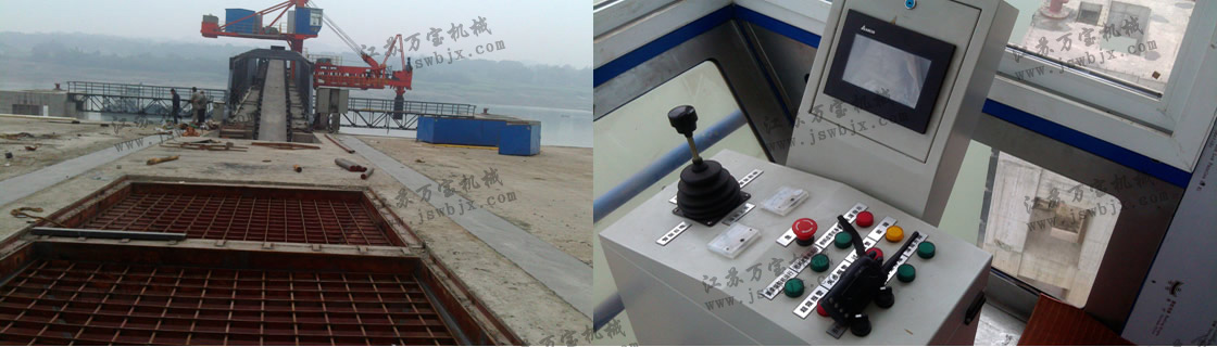 墩柱式裝船機(jī),具有臂架俯仰及伸縮、供料皮帶機(jī)、可伸縮和旋轉(zhuǎn)溜筒、尾車、除塵、供電和控制電纜卷筒等機(jī)構(gòu)和裝置。臂架工作俯仰、臂架伸縮、供料皮帶機(jī)、溜筒伸縮等各機(jī)構(gòu)既可單獨(dú)運(yùn)行,也可根據(jù)需要組合聯(lián)動(dòng)。
