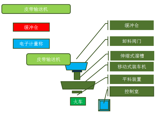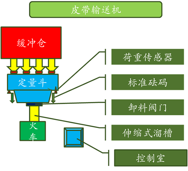 該快速定量裝車系統(tǒng)采用快速計(jì)量系統(tǒng)和移動裝車系統(tǒng)相結(jié)合,計(jì)量系統(tǒng)采用靜態(tài)計(jì)量,精度大于5‰。該系統(tǒng)主要由輸送系統(tǒng)、計(jì)量裝車系統(tǒng)(布料機(jī)構(gòu)、緩沖料倉、漏斗型定量倉、稱重系統(tǒng)、鄂式配料閘門、平板閘門)、軌道移動式裝車裝置(平倉系統(tǒng))、控制系統(tǒng)、除塵系統(tǒng)等。 |